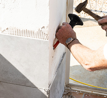 一般出現滲水的問題,首先我們一定要對滲水點進行排查,找到滲水點之后,順著裂縫將其鑿開,然后將里面的一些碎渣全部都清洗干凈。再用切割機將抹灰層全部都切割開來,在切割的過程當中一定要注意力度,防止震動太猛產生新的空鼓和開裂現象。