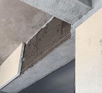 1.3.1.粘貼板材時必須是滿涂抹粘結砂漿,不允許出現空腔,包括邊角空腔;