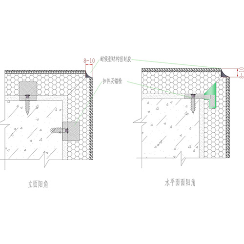 10.2.豎縫(密縫)做法:縫寬10mm,填耐候膠。如圖