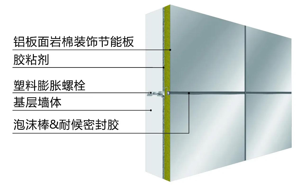 一體化鋁板成品,運(yùn)用粘錨結(jié)合工藝,粘接錨固雙重保障,且施工簡(jiǎn)單無(wú)繁瑣步驟,施工效率提高60%。