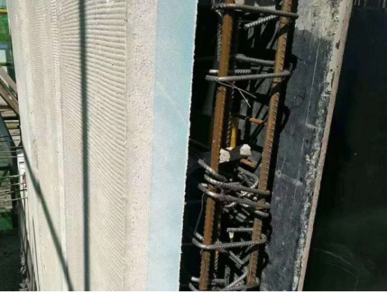 原理:將原本復雜的薄抹灰施工工序,不同零散材料組合的系統由工廠化預制成品,工人施工時只需要將免拆模板與鋼筋連接再通過水泥現澆的方式完成對保溫的需求。