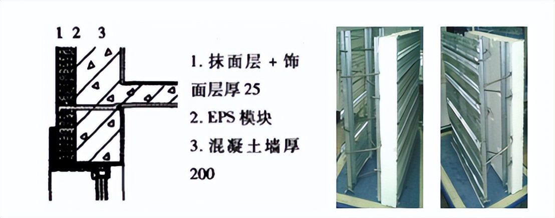 (4)免拆模板外保溫系統:適用于剪力墻結構外保溫,利用保溫板代替外部模板,實現墻體保溫、混凝土澆筑一次成型,將工廠標準化生產的EPS等保溫模塊經積木式相互錯縫插接拼裝成現澆混凝土墻體的外側免拆模板,實現保溫承重一體化的外墻建筑結構。該系統具有節省模板、保溫效果好、保溫層粘接牢固等優點,具有較好的應用前景。常用地區:上海、江蘇、南京等地。