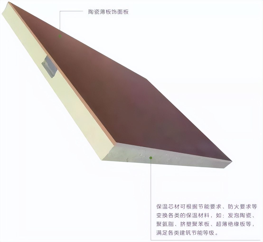 薄陶瓷保溫裝飾一體板采用無機非金屬材料制成,不含有對人體有害的物質,是一種綠色環保建材同。時,這種材料還具有良好的防火性能和抗腐蝕性能,可有效延長建筑物的使用壽命,不會對環境和人體健康造成不良影響。