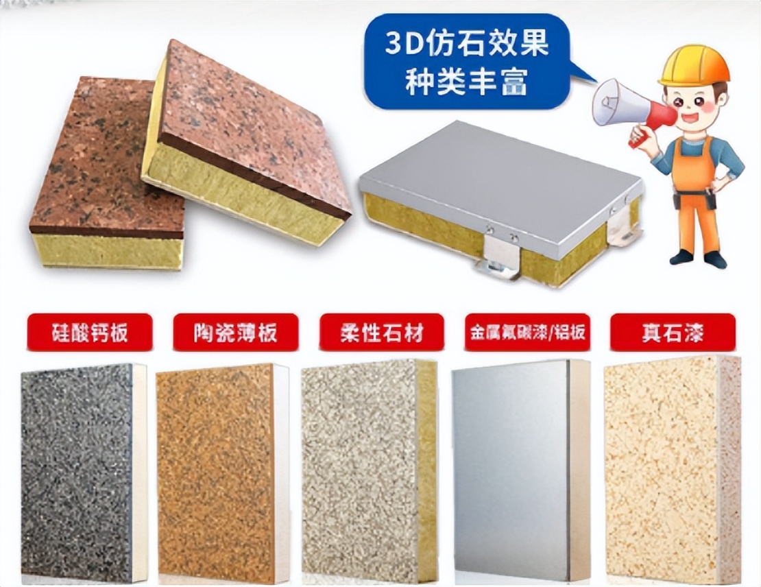 外墻保溫裝飾一體板由保溫材料、裝飾材料和增強材料組成。其中,保溫材料可以選擇聚苯乙烯板、石墨聚苯板、巖棉板等;裝飾材料可以選擇鋁板、瓷磚、天然石材等;增強材料可以選擇纖維增強硅酸鹽板、纖維增強水泥板等。在選擇材料時,需要根據建筑的具體要求和使用環境來選擇合適的材料。